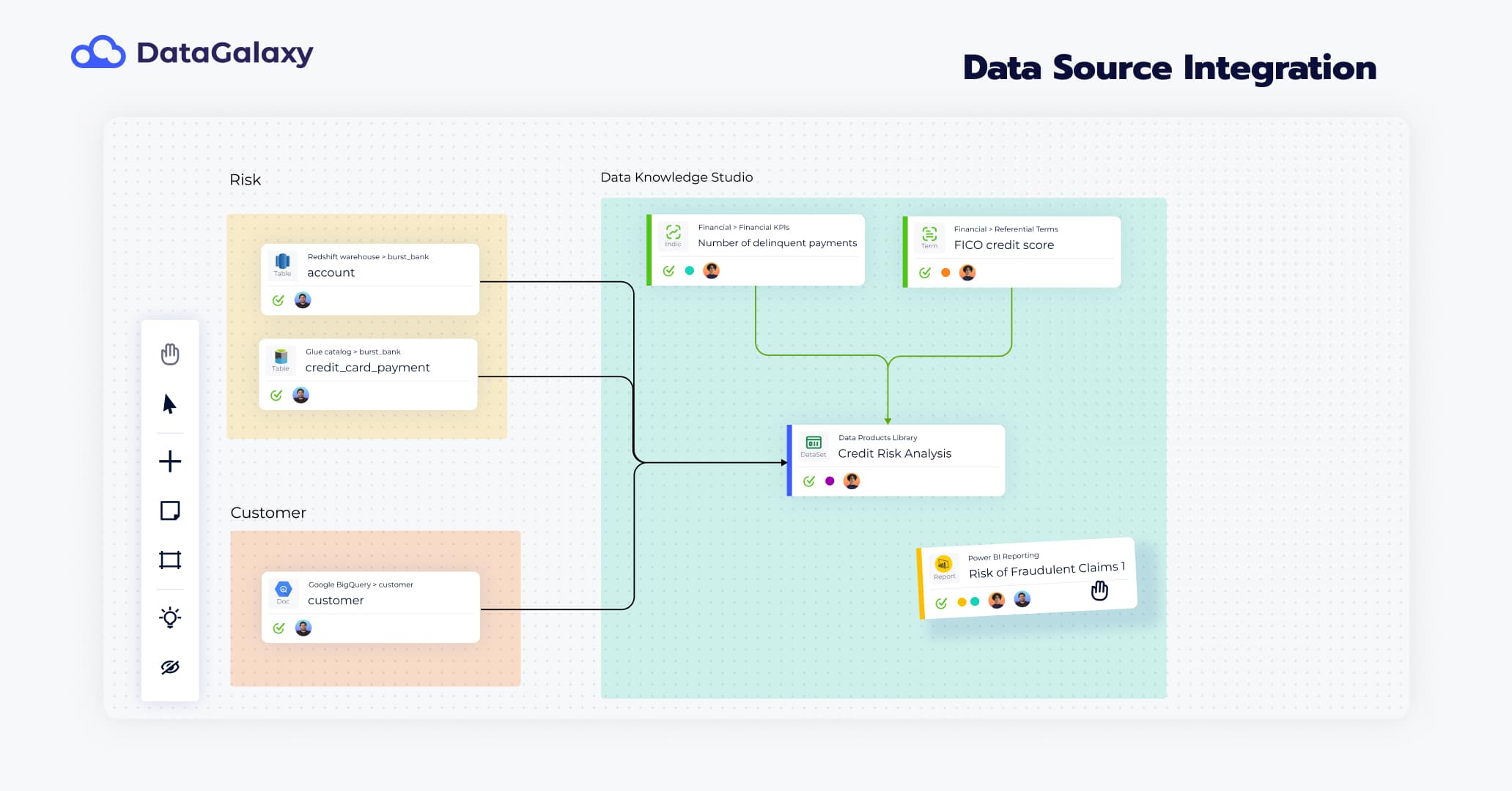 Whether you’re a Data Scientist, Business Analyst, Chief Data Officer, or data user, DataGalaxy’s Data Knowledge Studio is an invaluable tool that will help you make better, more informed decisions to benefit the entire organization.