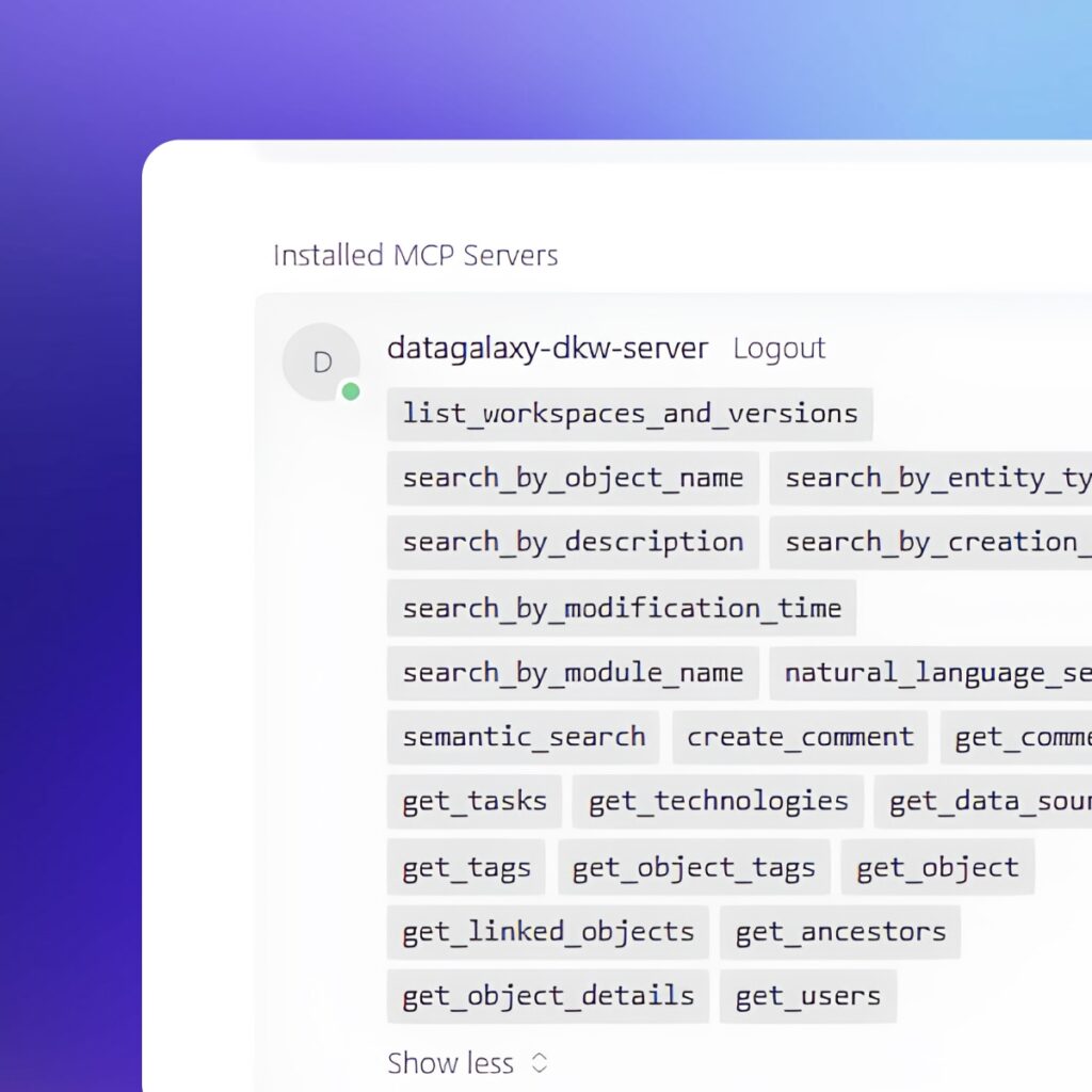 The MCP Server now includes new tools designed to help AI agents interact more deeply with DataGalaxy metadata.
